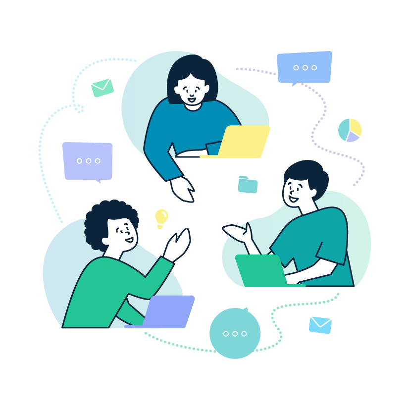 社内では5名程度でチームが組まれていて、リーダーやチームメンバー同士でサポートし合う体制になっています。チームごとに定例会を開催したり、交流を深める場を設けたりと、悩んだ時に声をかけやすい関係性を築けるようにしています。さらに、コミュニケーションツールを活用して、困った時にはチームを超えて皆でフォローし合う仕組みもあり、社員自ら率先して協力体制を築いているのが特徴です。